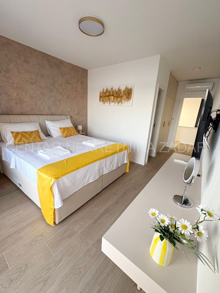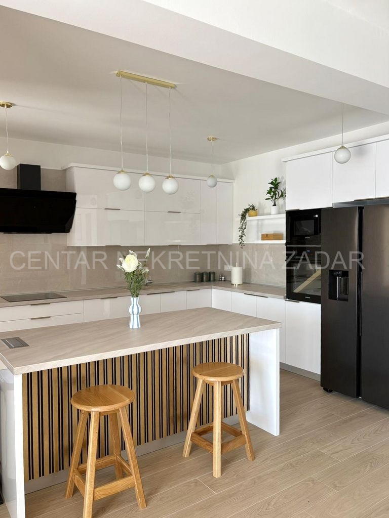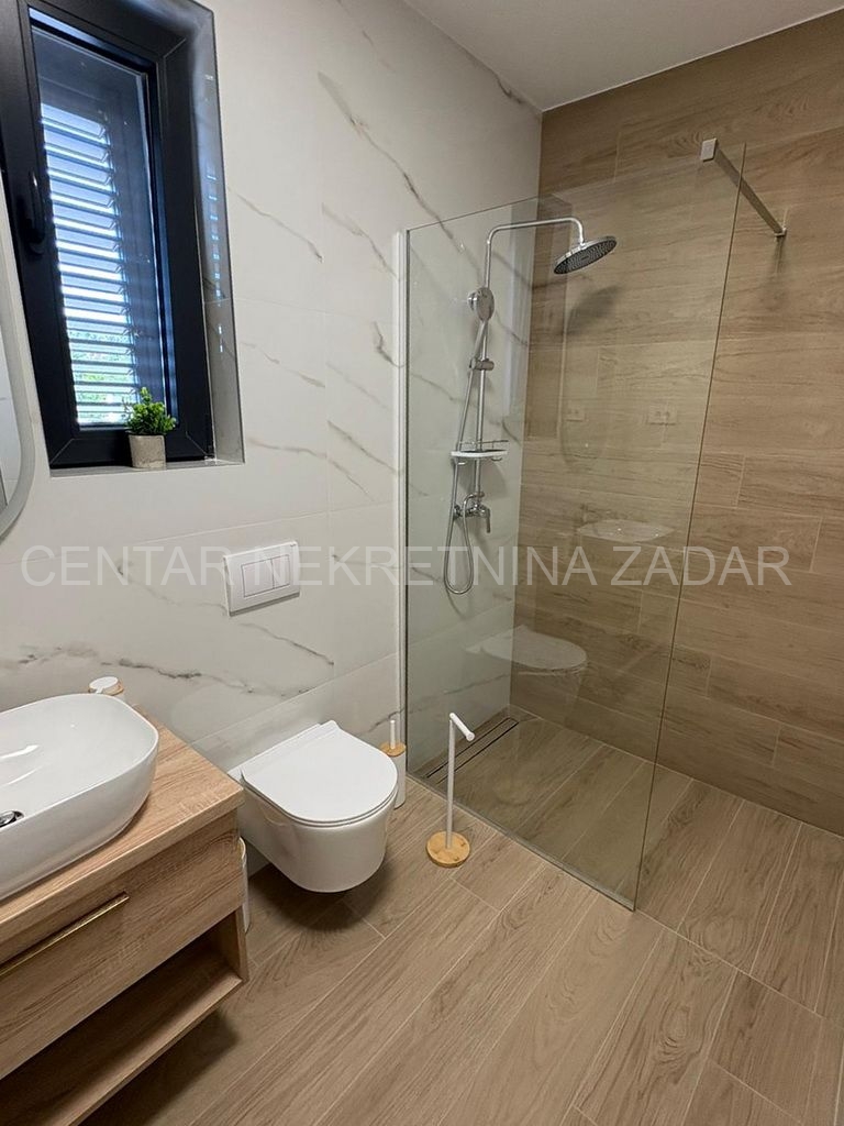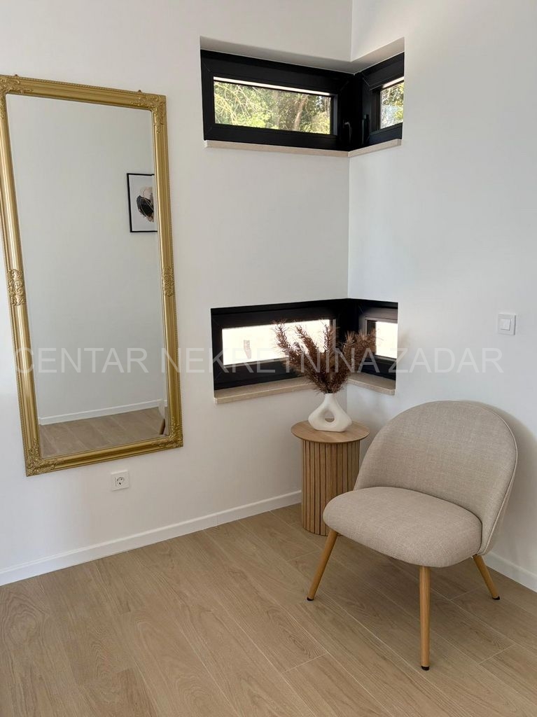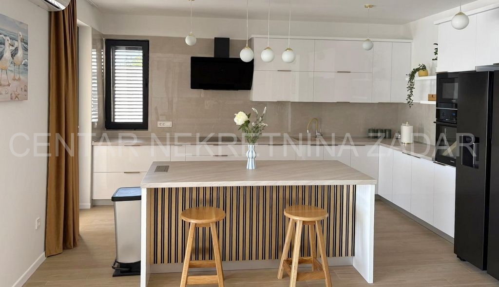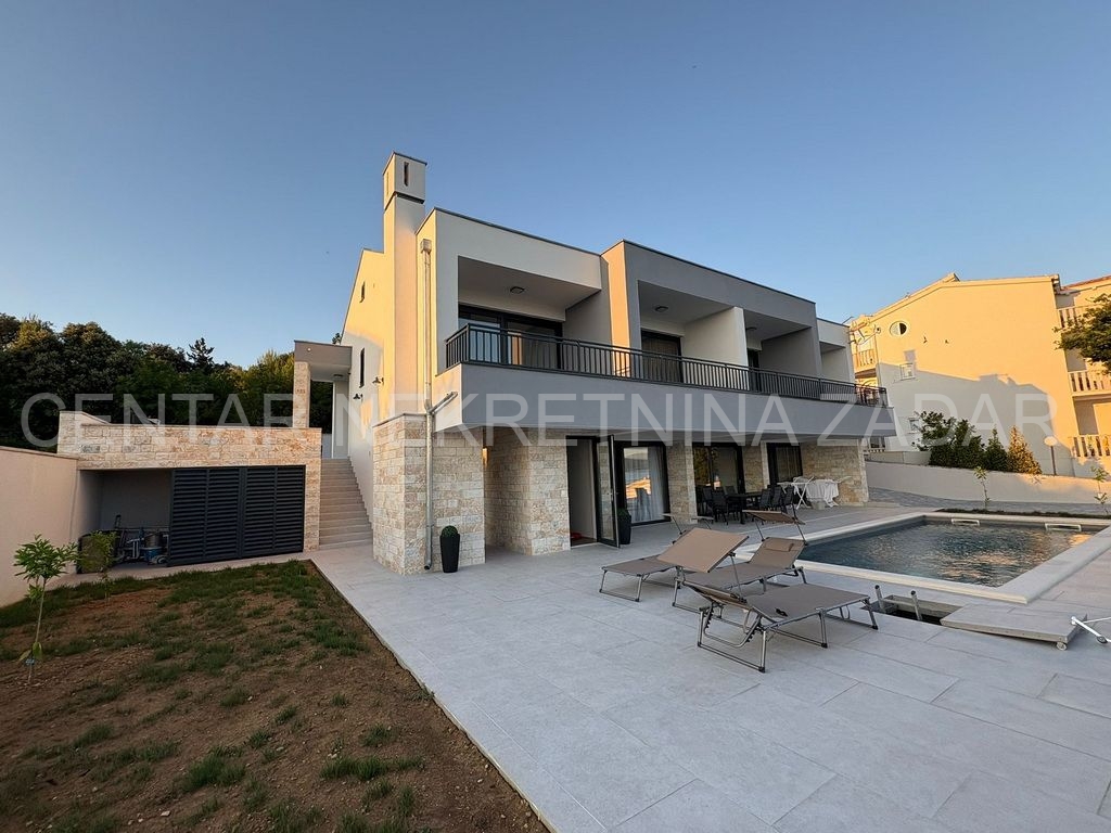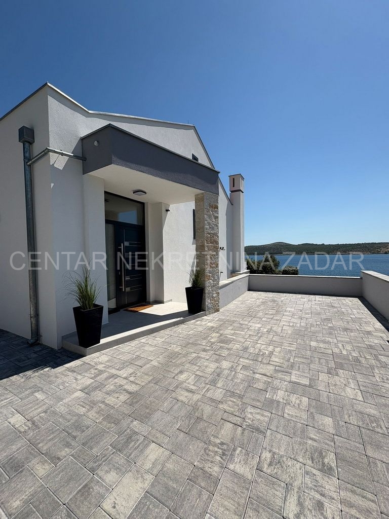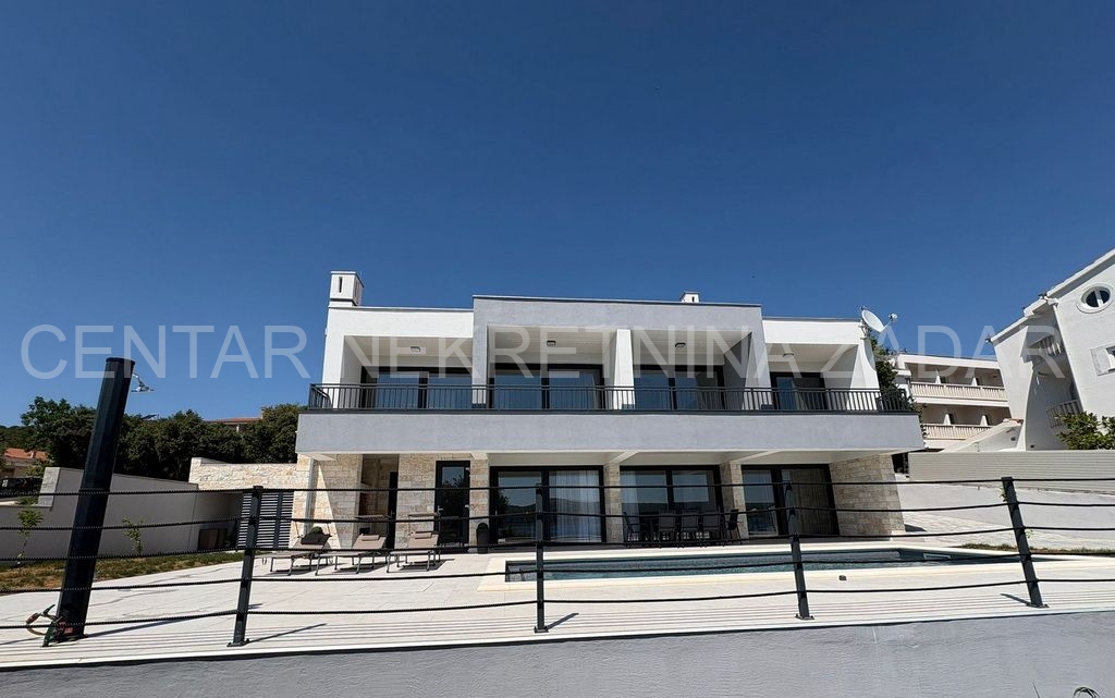 A newly built villa is for sale in Posedarje, located in an excellent, quiet location. It was built on a plot of land measuring 1015 m² that extends to the sea.