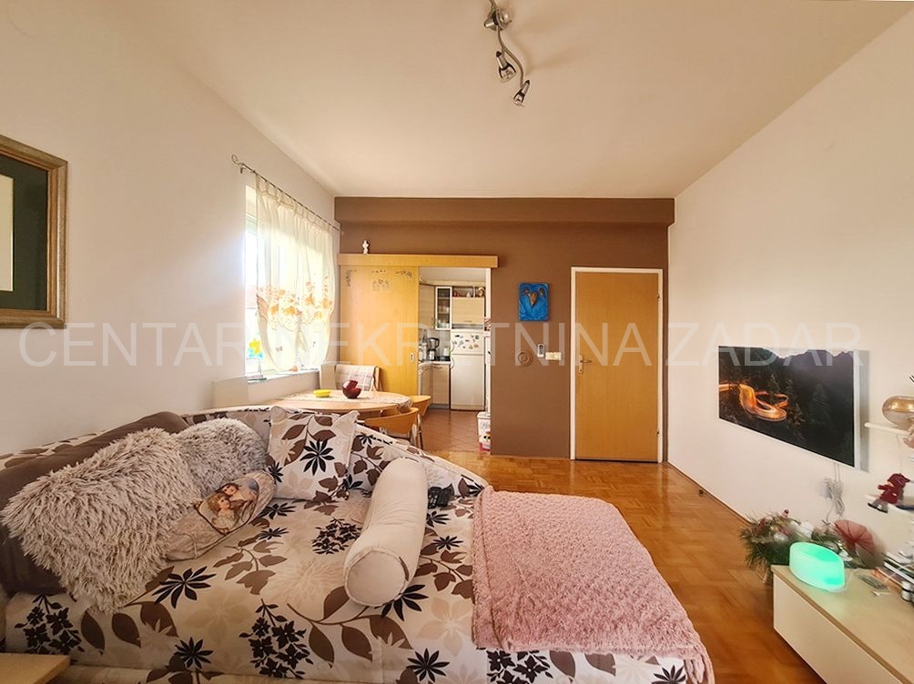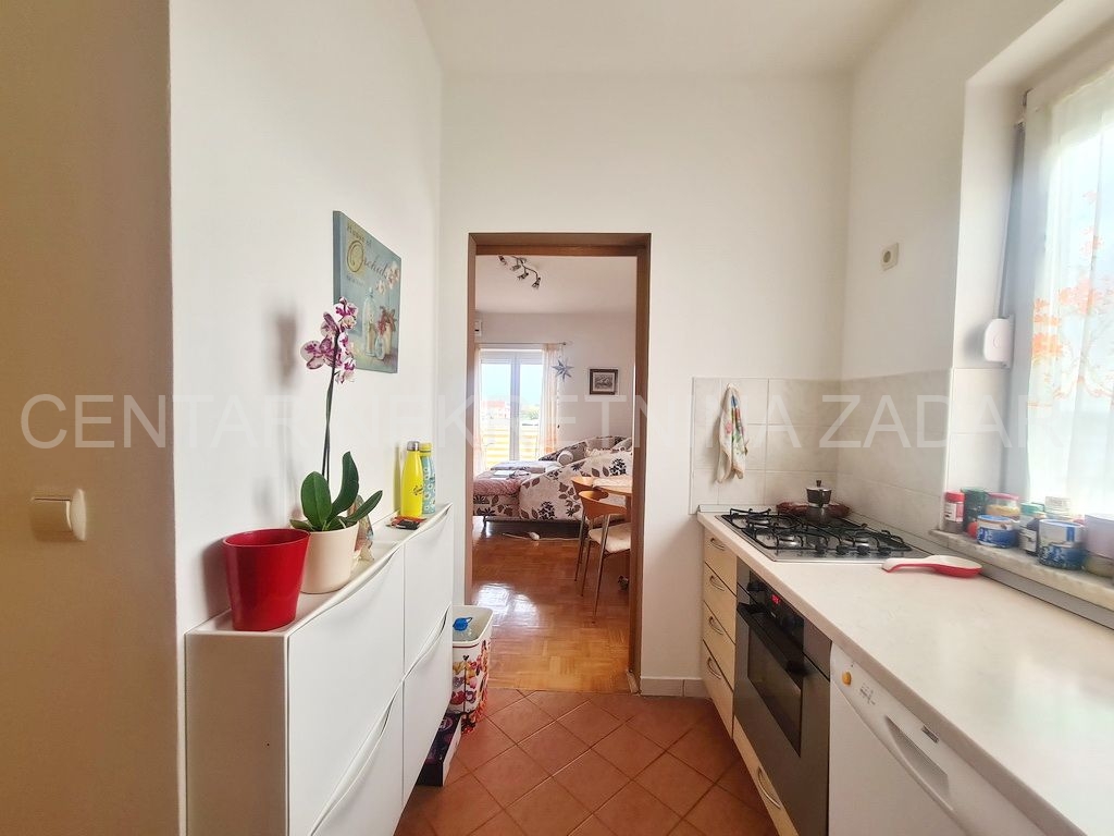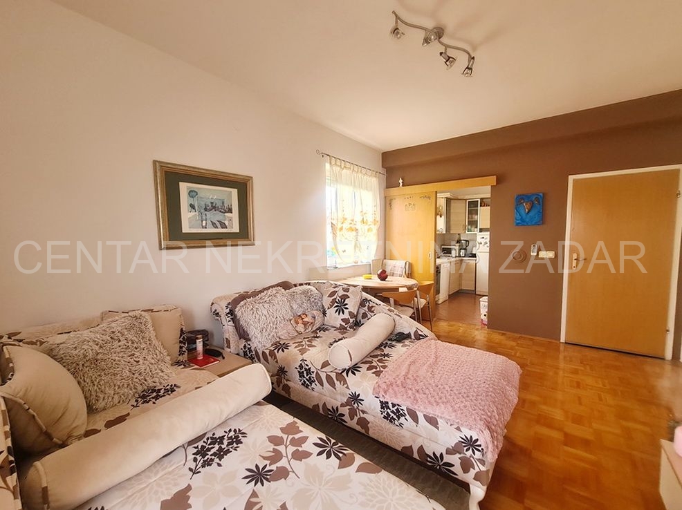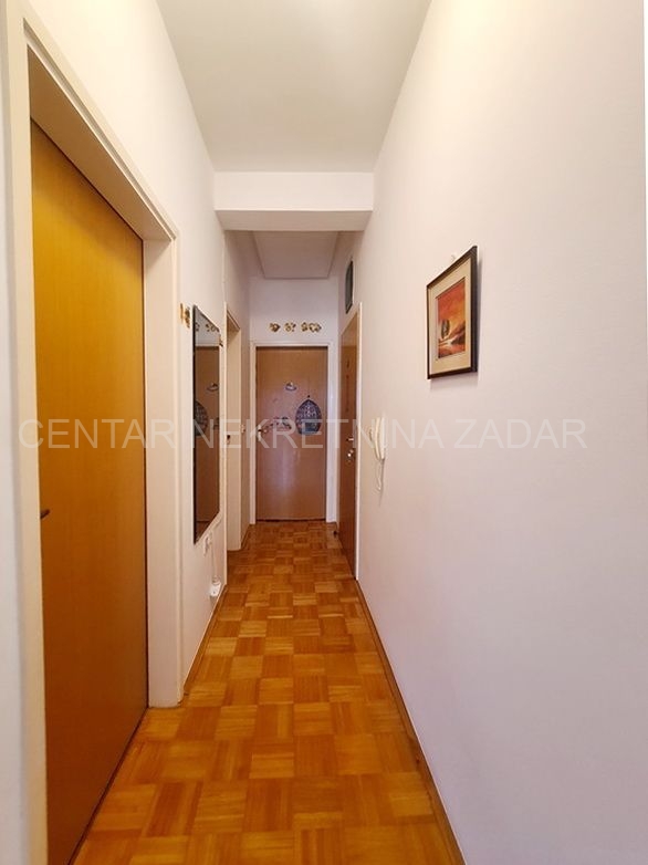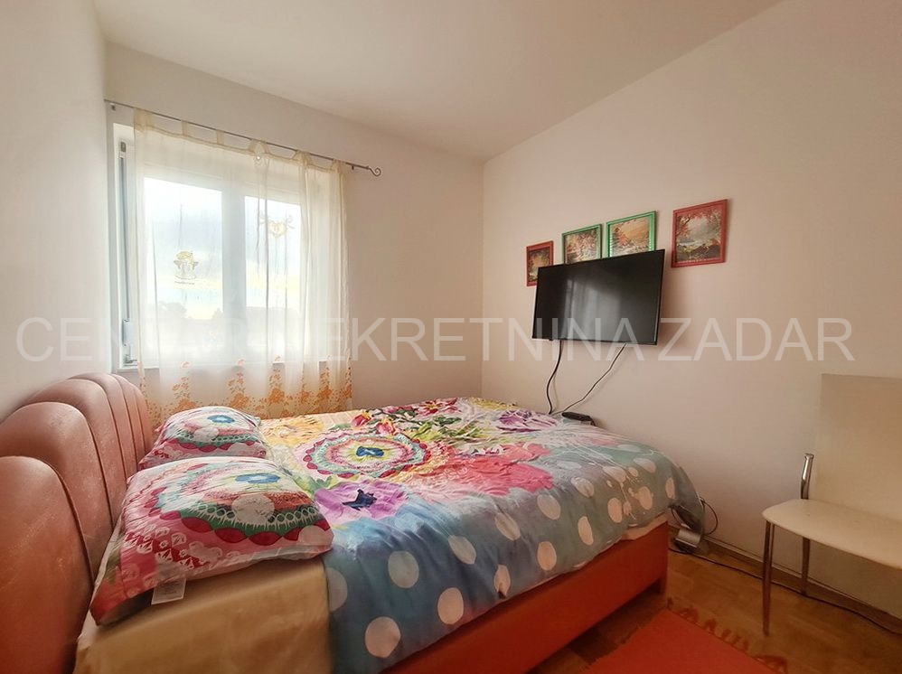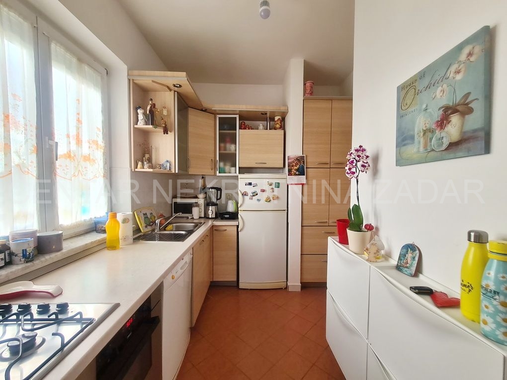 Prodaje se jednosobni stan u Ninu u manjoj stambeno poslovnoj zgradi smještenoj u prvom redu do mora. Stan se nalazi na 1. katu, ima 45 m2 te se sastoji od hodnika, jedne spavaće sobe, kupaonice, kuhinje, dnevne sobe i blagovaonice te balkona. Grijanje stana je osigurano mramoterm pločama, a postoji i mogućnost grijanja na drva jer je proveden dimnjak u predjelu dnevne sobe i blagovaonice, dok je hlađenje osigurano klima uređajem. Stan se prodaje bez namještaja, ali moguće je pregovaranje oko istog. Specifičnost stana je što sve njegove prostorije pružaju pogled na more. Stanu pripada i ostava u prizemlju zgrade, a parking je dostupan u dvorištu iste. Zgrada je izgrađena 2005. godine, ima termoizolaciju (stiropor fasadu), u prizemlju se nalaze 4 poslovna prostora tihih djelatnosti a na katu su smještene 4 stambene jedinice. Zgrada se nalazi na mirnoj ali idealnoj lokaciji, samo na par koraka od centra mjesta i blizine svih potrebnih sadržaja za svakodnevni život što ovu nekretninu čini idealnom investicijom za svakodnevni život ali i turističke svrhe.