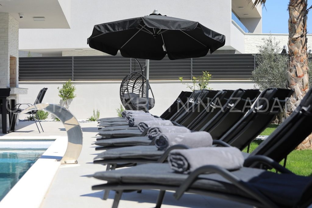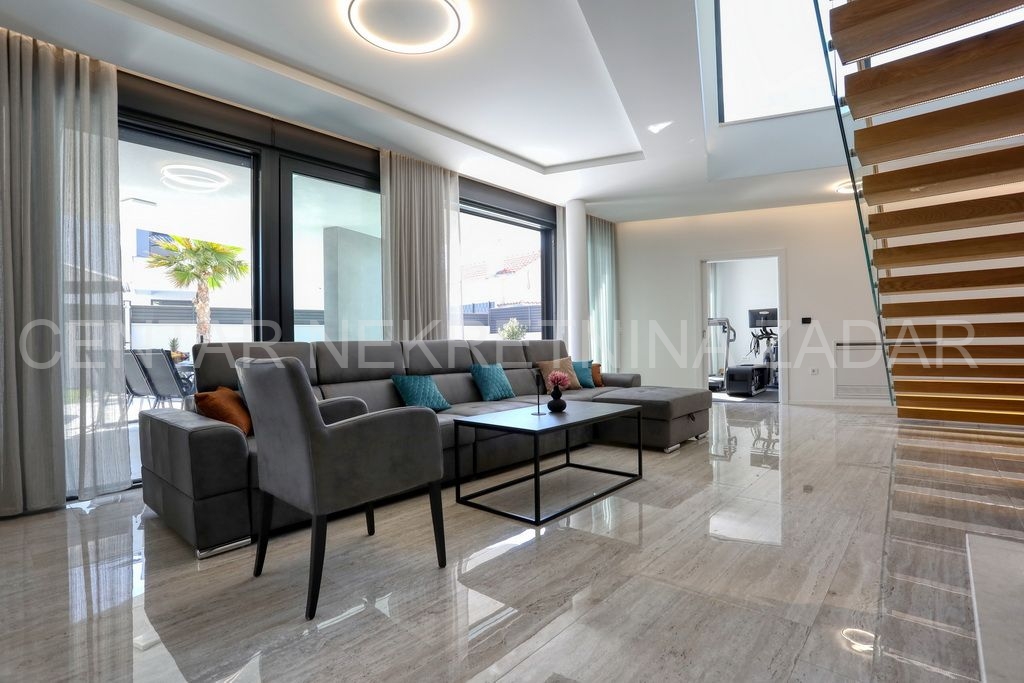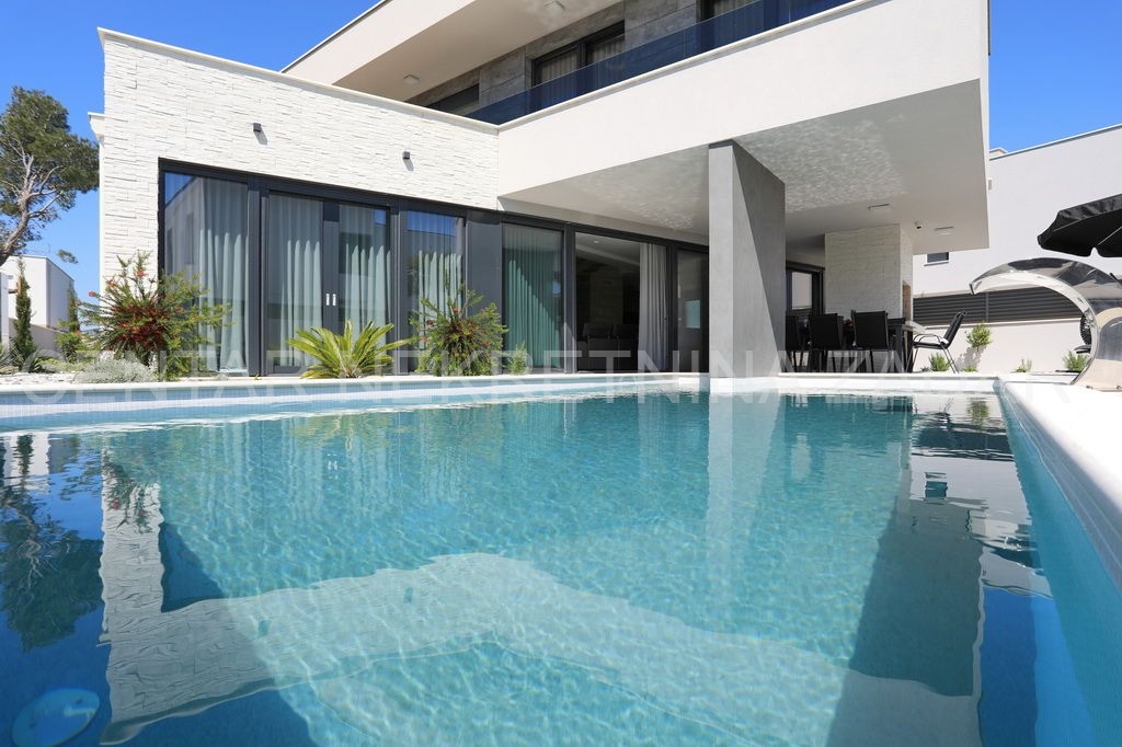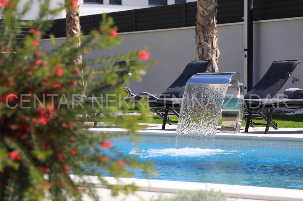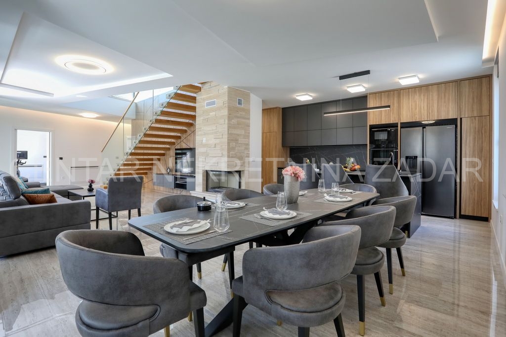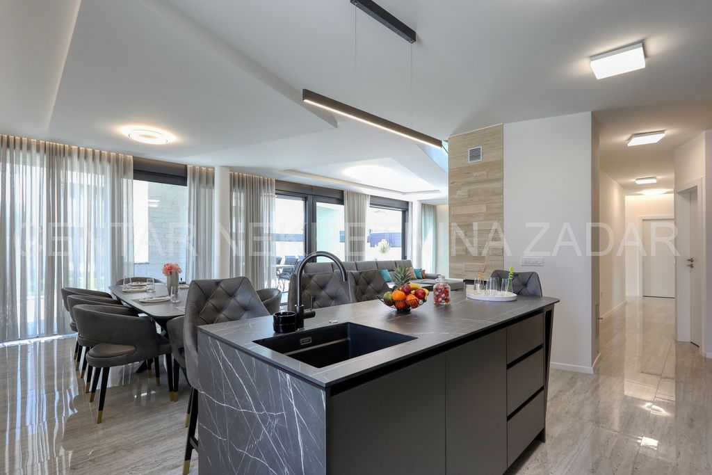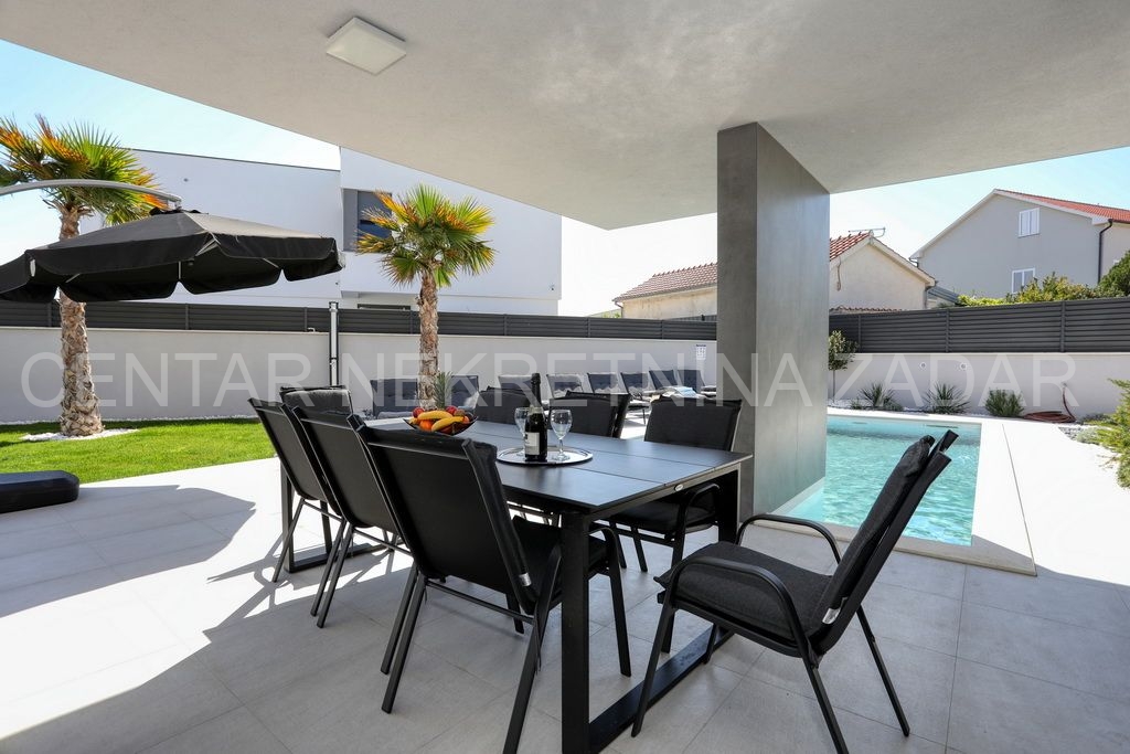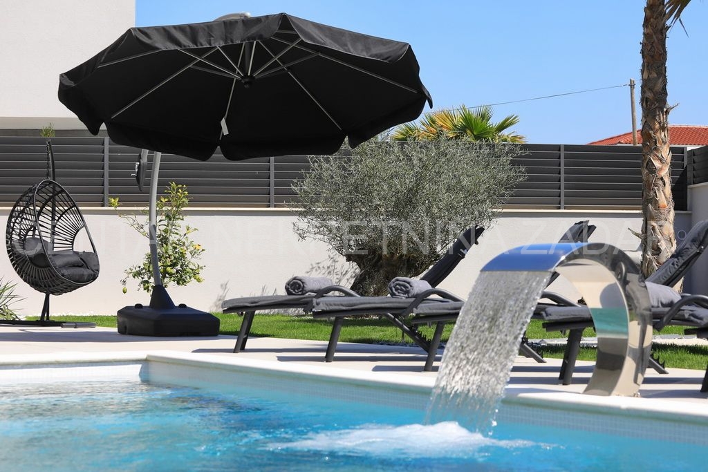 Prodaje se nova vila s bazenom u Zatonu. Izgrađena je 2023. na zemljištu od 707 m², a stambena površina od 263 m² prostire se na dvije etaže.
