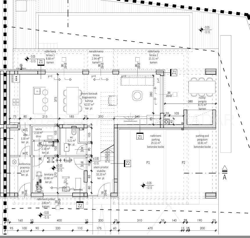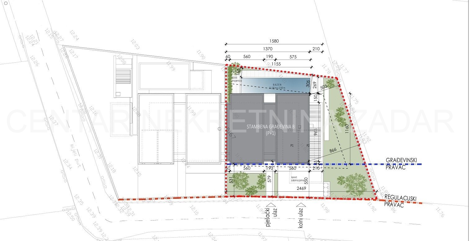 Prodaje se novoizgrađena vila s bazenom u Zatonu, smještena u mirnom dijelu mjesta. Izgrađena je na zemljištu od 440 m², a stambena površina od 220,43 m² raspoređena je na prizemlje i kat.